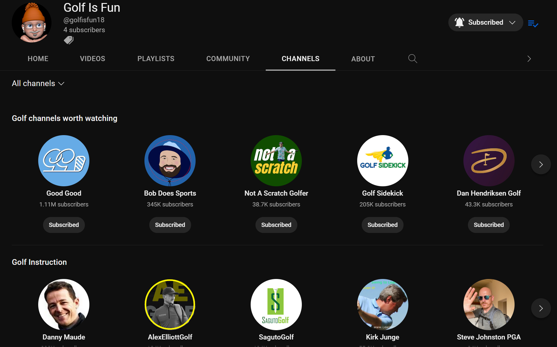 You can find my top rated subscriptions on my YouTube channel, @golfisfun18 – why not give me a subscribe while you are there?